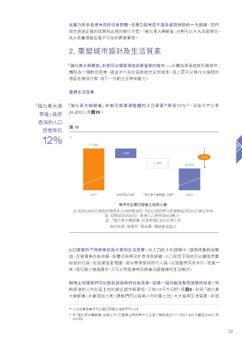 在「強化東大嶼都會」計劃之下,已發展土地的每平方公里人數將由2017年的27,400下調至2043年的