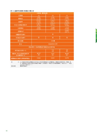 表 15. 置業率對樓價之影響的回歸分析 註: (*) 以上回歸分析採用34個國家2004年至2015年的面板數據(共310個觀察值)。數據的詳細資料列在「數據」部 分。標準誤差及P值分別列於各係數及F檢驗下方的括號內。星號表示各系數的顯著性(*為百分之十、**為百 分之五及***為百分之一)。 資料來源: 團結香港基金。 42