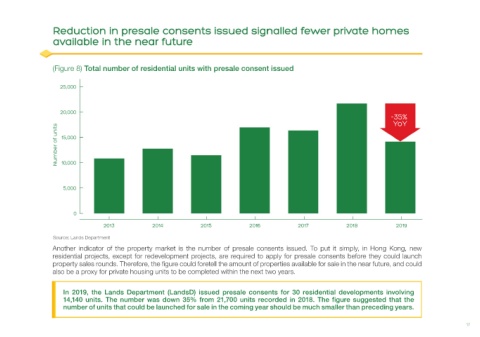 In 2019, the Lands Department (LandsD) issued presale consents for 30 residential developments involving