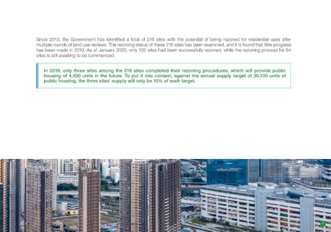 has been made in 2019. As of January 2020, only 132 sites had been successfully rezoned, while the rezoning process for 64