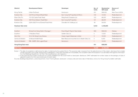 Notes: 1. The date of completion is defined as the date of obtaining the Occupation Permit. The expected date is sourced from the sales brochure of the project, disclosure from presale