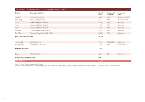 Islands Tung Chung Area 54 3,300 HOS New Town & NDA